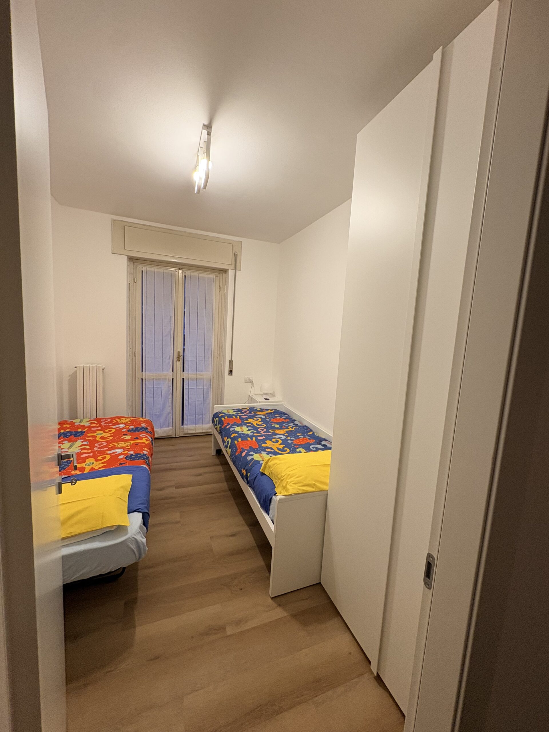 Le camere sono così composte: cameretta con due letti singoli, grande camera con letto matrimoniale e letto singolo. Totale 5 posti letto.